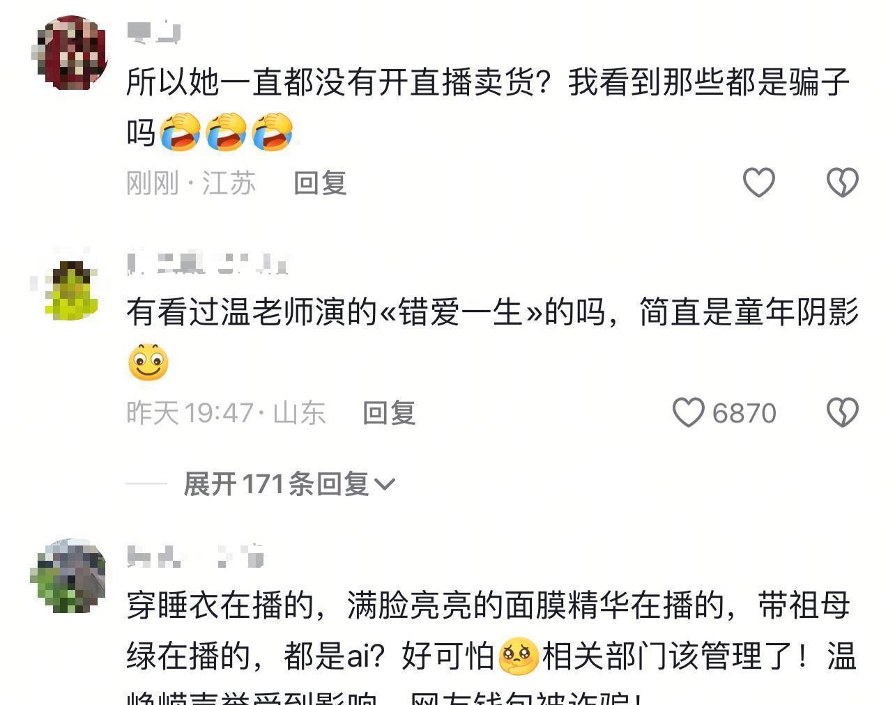 当她切换到另一个直播间,又看到“自己”穿着完全不同的衣服在卖护肤品,她用自己的账号进入直播间,打出一行字:“你是温峥嵘,那我是谁?”对方的回应只有两个字拉黑。这位在演艺圈摸爬滚打23年的老戏骨,从《千山暮雪》到《许我耀眼》,塑造过无数经典角色,却从未想过有一天需要向别人证明“我就是我”,她坐在空荡荡的化妆间里,看着手机屏幕上那张和自己一模一样的脸,第一次感受到一种前所未有的荒诞。