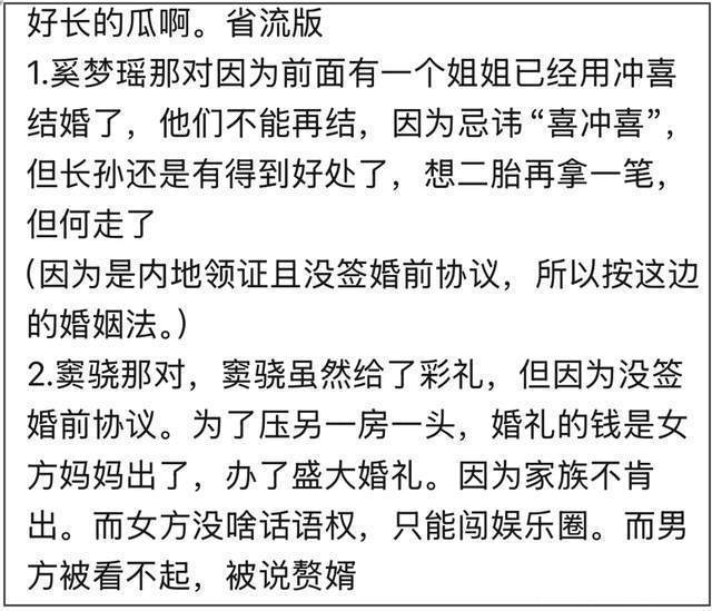 如今又有了新的爆料,婚礼并非窦骁出资,而是何超莲的妈妈,也就是三太,为了压四房一头,所以出资给何超莲办了盛大的婚礼,但是因为窦骁不肯签婚前协议,所以两人至今没领证。