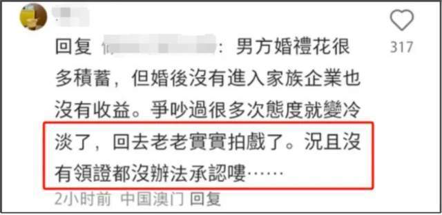 还有一直有一个说法是,两人根本没有进行结婚登记,所以就有网友替窦骁鸣不平,觉得女方太会计算了。其实两人婚变已经被曝两年了,比较集中的说法就是这个没领证,双方也没回应否认过。
